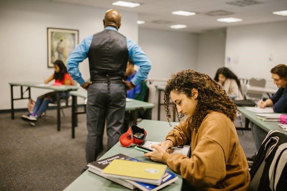 GED math practice tests also include fill-in-the-blank questions, requiring precise calculations and accurate numerical input. Unlike multiple-choice, there’s no guesswork; the answer must be exact. Show your work meticulously, as this helps identify potential errors when reviewing with the answer key. Pay close attention to units – ensure your answer includes the correct units if specified in the question.
