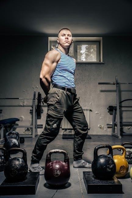 Kettlebell exercises PDF guides emphasize structured workouts, including dedicated warm-up exercises and cool-down stretches for optimal performance and recovery․