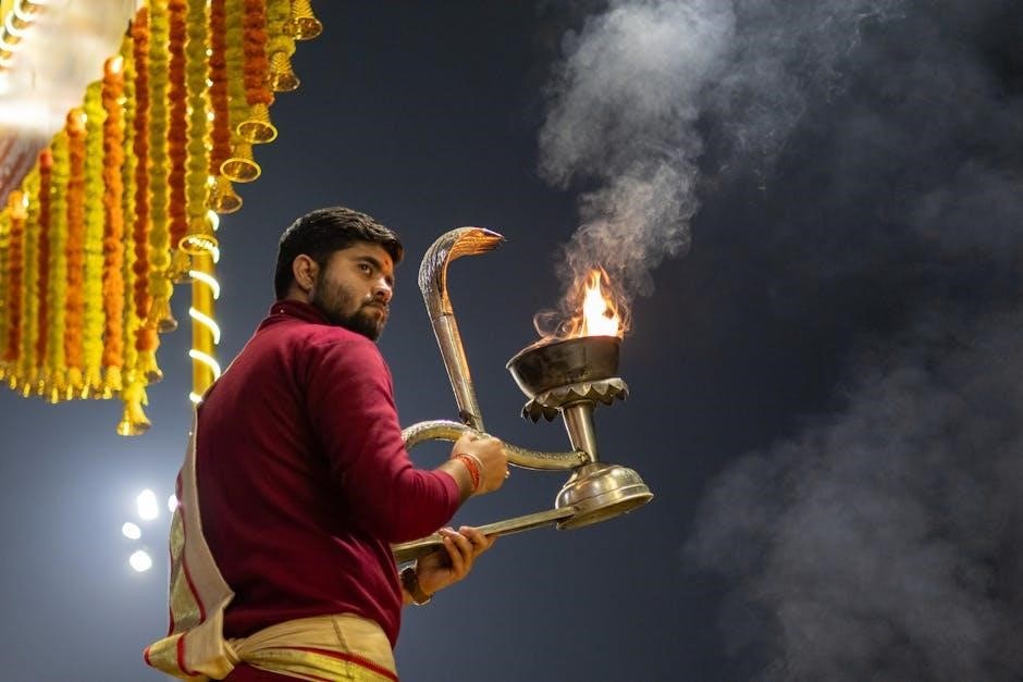 The ease of accessing the aarti through PDF downloads amplifies its reach and allows for consistent devotional practice. These PDFs often serve as a portable and readily available resource for learning and performing the aarti correctly. The aarti’s connection to both Lord Vishnu and Shiva highlights a harmonious blend of divine energies, making it particularly potent and universally revered within Hindu traditions.