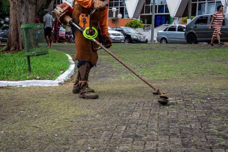 Release the trigger to immediately stop the trimmer. If the trimmer doesn’t start, check the battery charge level and ensure it’s fully inserted. Inspect the battery contacts for any debris or corrosion; A fully charged battery is essential for optimal performance.